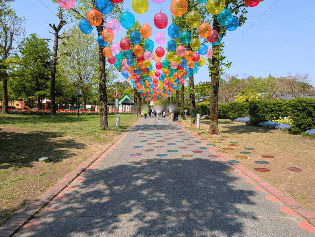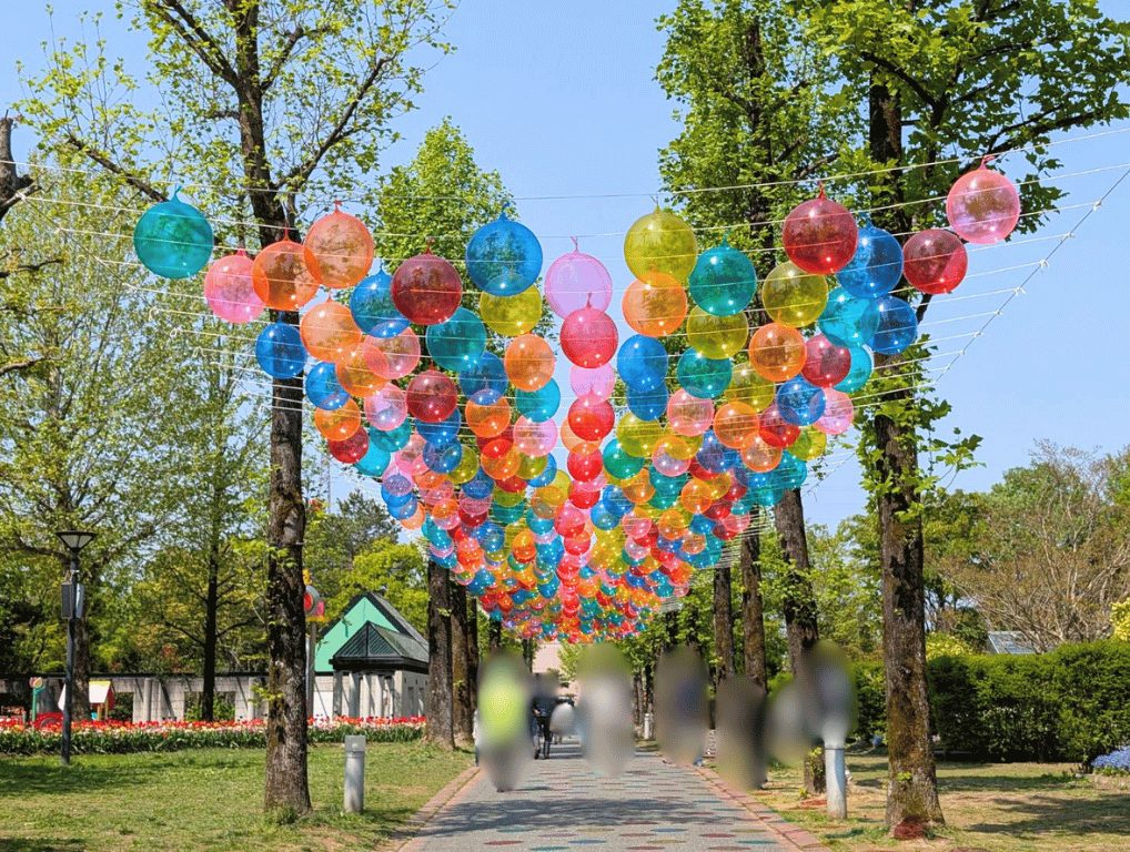 50メートルに渡って色とりどりの風船が浮かんでいる、バブルスカイというエリアも要チェック!