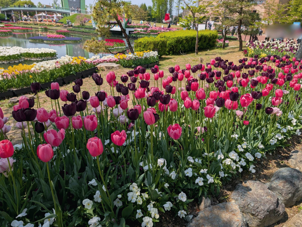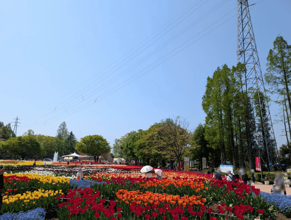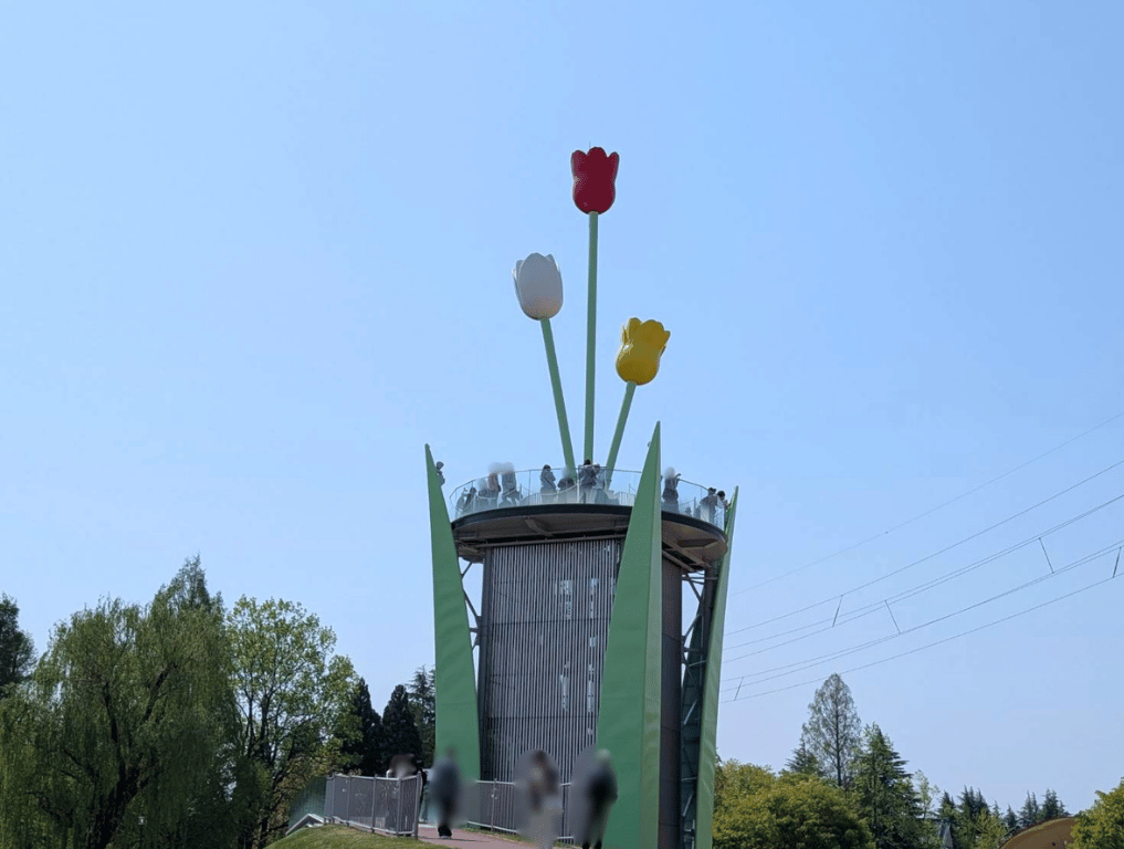 タワーから見下ろす、カラフルなチューリップの絶景に癒されます♪